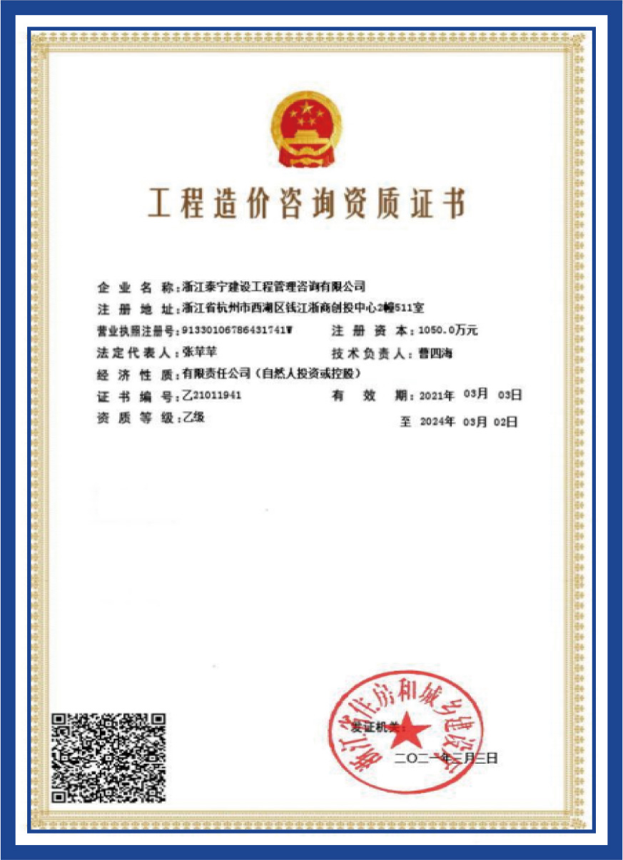工程造價(jià)咨詢資質(zhì)證書